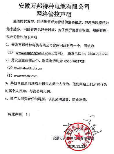 鄭重聲明:安徽萬邦特種電纜有限公司官方網站為:www.wanbangcable_com.zonetrading.cn,除此之外無任何子網站或合作網站,其余均為假冒偽劣。電話:0550-7621728 13485756353 地 址:安徽省天長市滁州高新技術產業開發區經四路29號